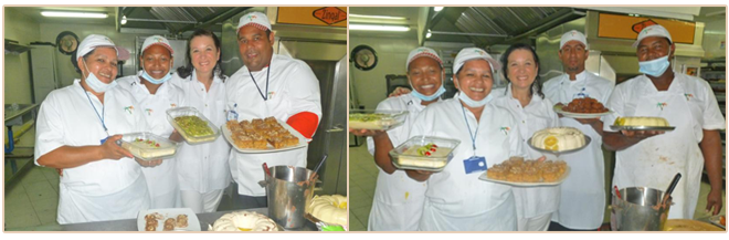 Evelyn con el Chef Ismael y su equipo de pasteleros y panadería, confeccionaron variados postres en un taller especialmente realizado para beneficiar a los visitantes con prohibición de consumo de azúcar en esta concurrida cadena del Caribe.